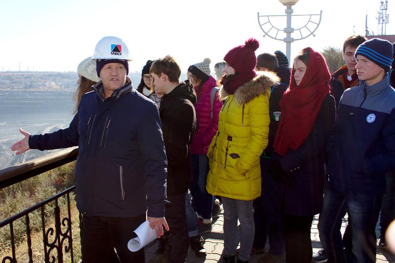 Увлекательную экскурсию для гостей провел главный геолог предприятия Дмитрий Косарев, рассказавший об истории формирования месторождения и об истории его открытия. Он дал подробную характеристику руды, добываемой в карьере, описал ее минеральный состав и привел содержание полезных и вредных компонентов в руде. Рассказ специалиста сопровождался демонстрацией основных типов руд, расположенных в музее, находящемся на смотровой площадке карьера. Специалист отдела охраны окружающей среды Юлия Пырькова перечислила природоохранные мероприятия и отметила важность мониторинга состояния компонентов природной среды в пределах горного отвода. Наконец, доцент ВГУ Вадим Кульнев обратил внимание экскурсантов на особенности формирования природно-техногенных экосистем горнодобывающего класса.