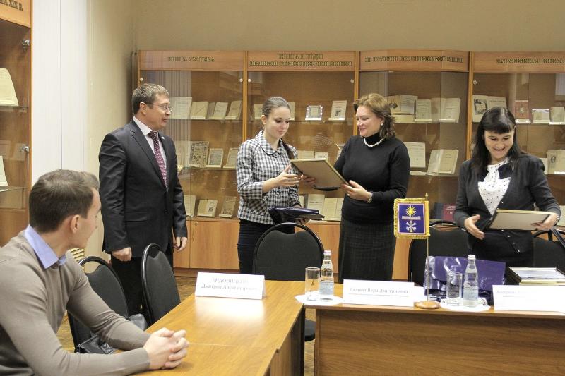 19 ноября в Музее книги Воронежского государственного университета состоялось торжественное награждение студентов, удостоенных получения стипендии ОАО «НЛМК» на 2015-2016 учебный год. Программа «Стипендия НЛМК» для студентов ВГУ была учреждена в 2011 году.