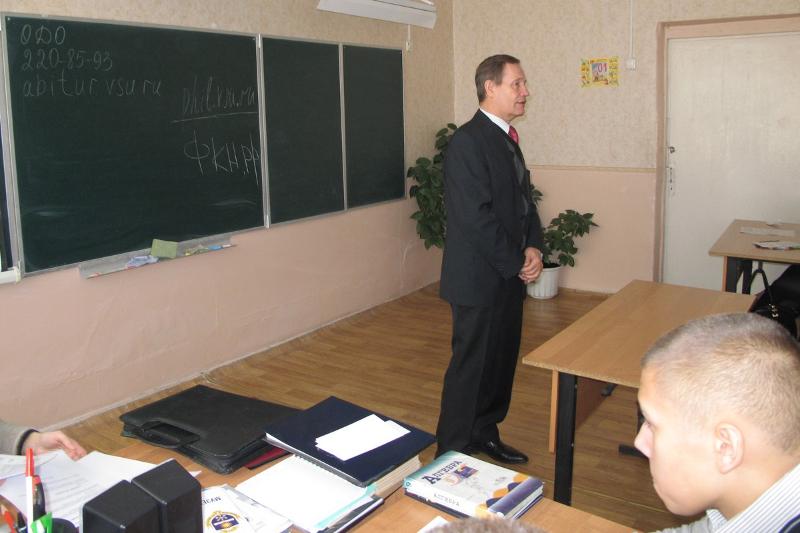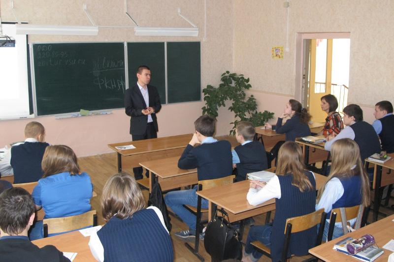 Преподаватели университета рассказали учащимся 9–11 классов о правилах приёма в ВГУ, новых специальностях, олимпиадах, научной работе со школьниками. Большой интерес у ребят вызвала информация об обучении по программам среднего профессионального образования и в Учебно-военном центре при вузе.