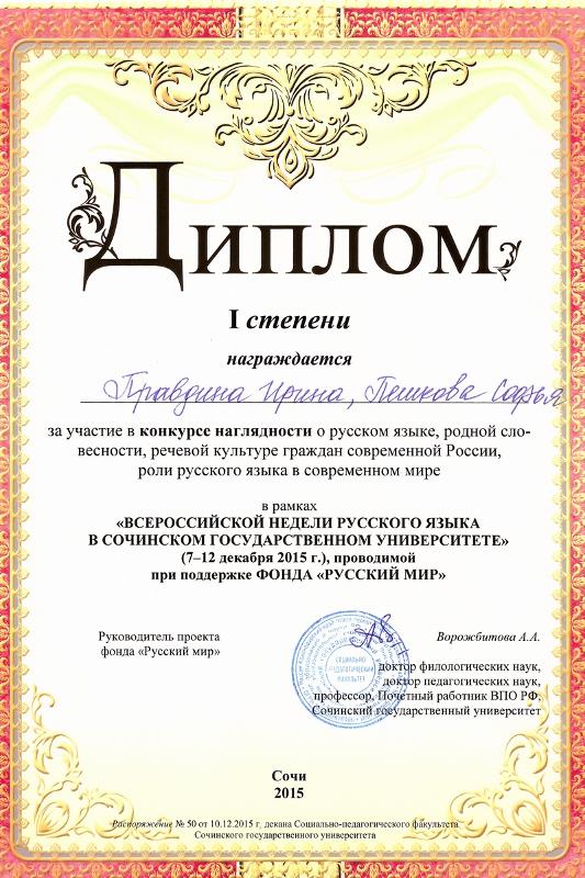 7–12 декабря на базе Сочинского государственного университета прошла «Всероссийская Неделя русского языка», организованная Фондом «Русский мир». Целью проекта было привлечение внимания молодежи к проблемам русской речемыслительной культуры, самопроектированию в качестве сильной языковой личности диалогического, демократического, поликультурного типа, популяризация русского языка и литературы.