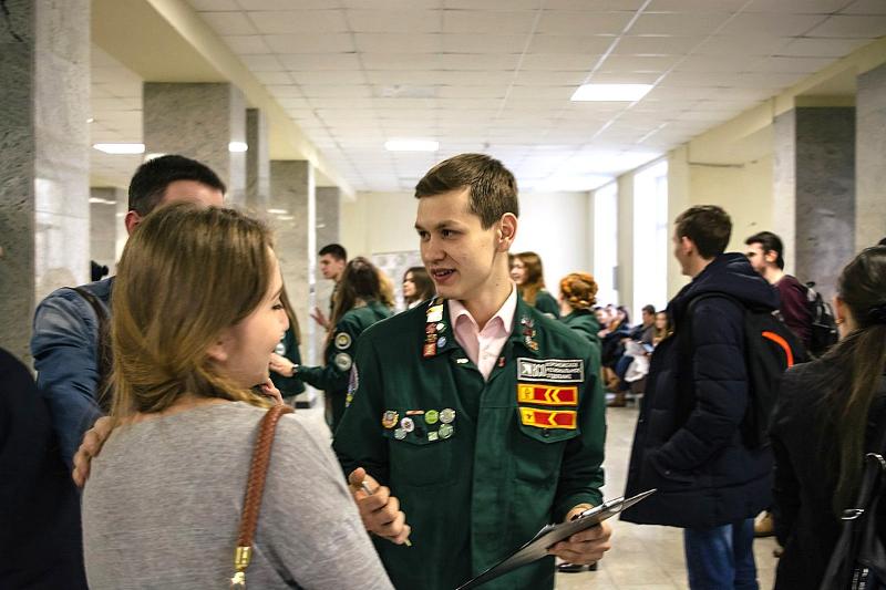25 февраля активисты Штаба студенческих отрядов Воронежского государственного университета провели в Главном учебном корпусе вуза первую в этом году агитационную кампанию. В мероприятии приняли участие около 20 командиров, комиссаров и бойцов штаба, которые рассказали обучающимся о работе студенческих отрядов.