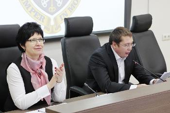 Следующим на повестке стоял вопрос о социальном партнерстве в университете, содокладчиками по которому выступили проректор по воспитательной и социальной работе Олег Гришаев и председатель профкома сотрудников Людмила Владимирова.