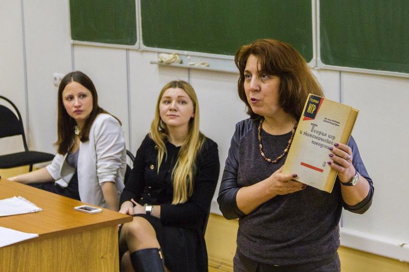 На встрече присутствовал специально приглашенный спикер – доктор экономических наук, профессор Ирина Щепина. После просмотра она поделилась своими впечатлениями от фильма, а также рассказала об эволюции науки теории игр, подробно останавливаясь на понятии «равновесие Нэша».