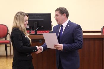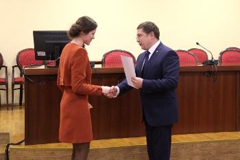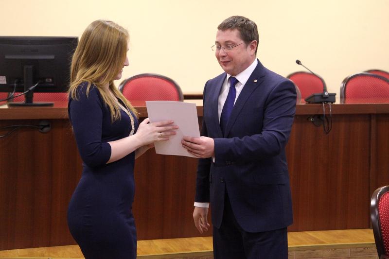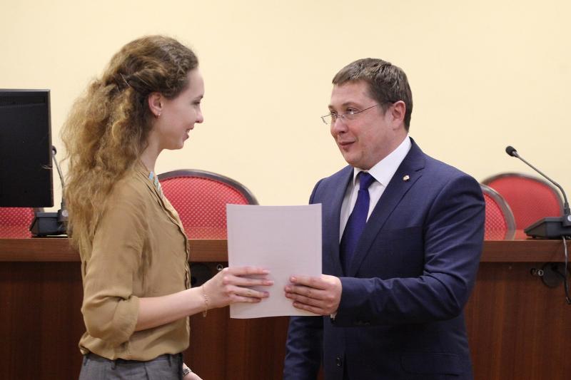 С ответным словом от лица студентов выступил стипендиат ОРФ, студент первого курса магистратуры юридического факультета ВГУ Олег Лозенков: