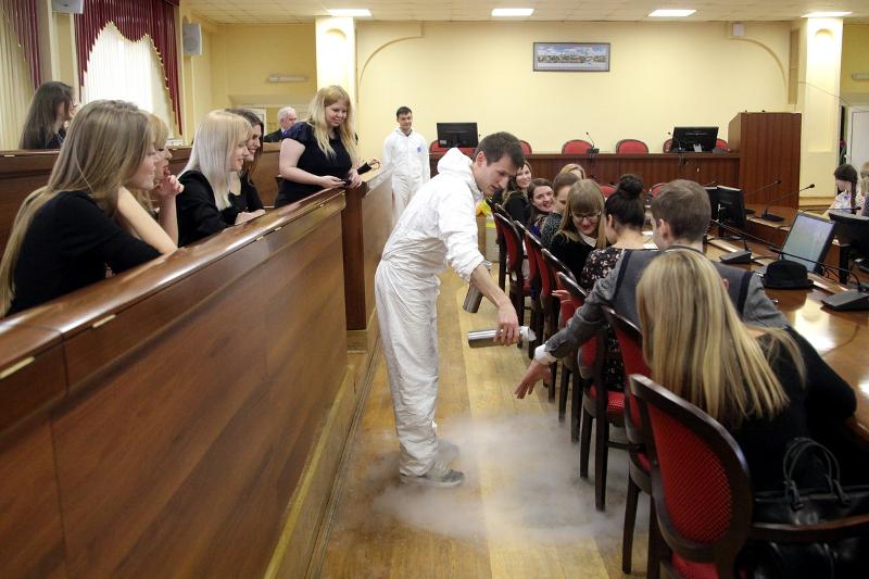 С творческими поздравлениями выступили: студент второго курса филологического факультета Алексей Кардаш, который представил музыкальную композицию на виолончели, иностранные студенты ВГУ – Милена Шофранац (Черногория) и Дивин Флорсиль (Конго), которые исполнили песню на английском языке, и команда молодых ученых вуза «Creative Science», которая показала зрелищное шоу научных экспериментов.