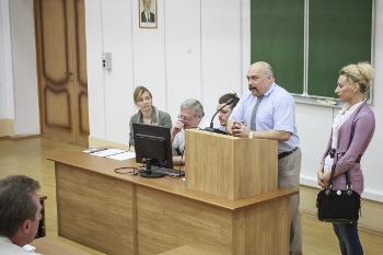 Чтобы поприветствовать делегацию из 24 французских студентов, в новом корпусе экономического факультета ВГУ собрались проректор по воспитательной и социальной работе Олег Гришаев, проректор по экономике и международному сотрудничеству Олег Беленов, декан экономического факультета Павел Канапухин, представители факультетов романо-германской филологии, международных отношений, экономического факультета.