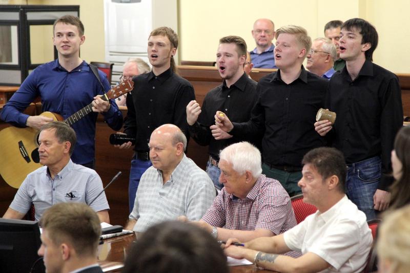 В завершение заседания вокальная группа Общеуниверситетского хора ВГУ выступила с творческим поздравлением родному вузу с окончанием учебного года.