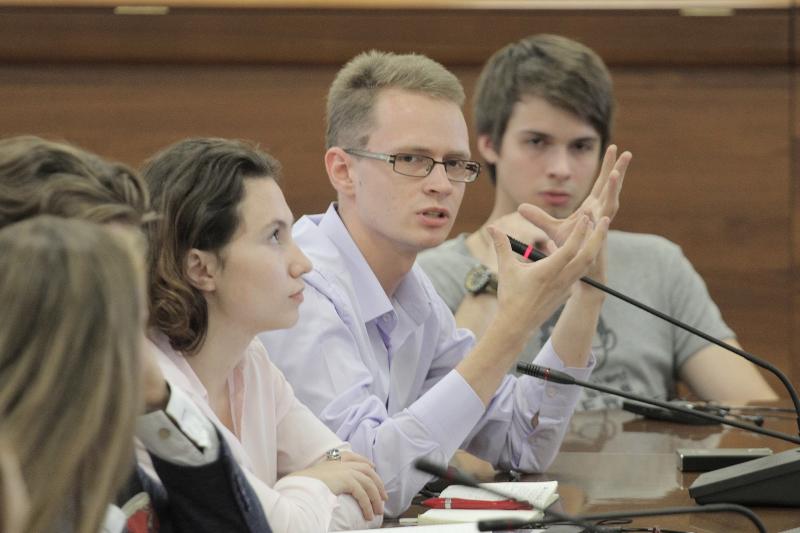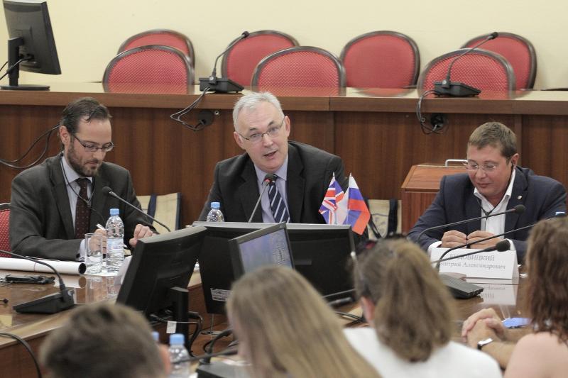 В Воронежском госуниверситете существует студенческое научное общество. Это объединение, которое направлено на коллаборацию студентов, их научных идей, оно позволяет учащимся развиваться в науке. Студенты-физики нашего вуза в этом году представляли Россию на Международном турнире физиков в Париже и заняли там почетное третье место. Об этом гостям рассказал магистрант физического факультета ВГУ Сергей Воищев: «На турнире у нас был один бой с командой Ноттингема, это был серьезный бой». Он также поинтересовался у гостей о существовании научных обществ в вузах Великобритании.