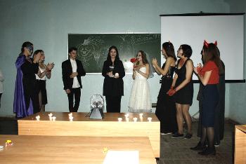 Студенты английского отделения факультета РГФ Воронежского государственного университета в рамках работы английского клуба отметили Хэллоуин. В программе праздника были песни, сценки, викторины, конкурсы, просмотр видеороликов, снятых самими студентами. Самые яркие гости смогли принять участие в конкурсе костюмов. Тёплая творческая атмосфера праздника помогла всем участникам раскрыть свои таланты.