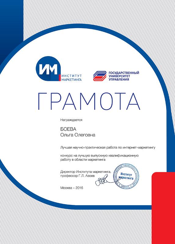 Ольга Боева была награждена за лучшую научно-практическую работу по интернет-маркетингу.