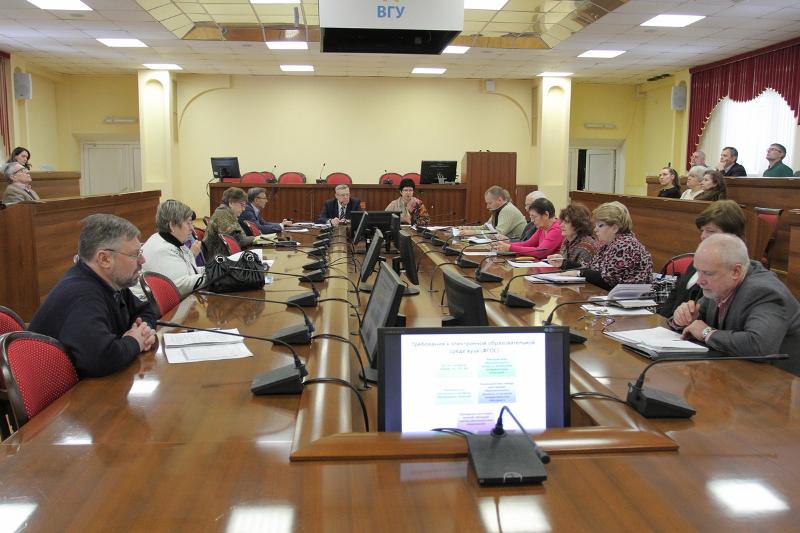 Главным вопросом повестки дня был доклад первого проректора-проректора по учебной работе Елены Чупандиной «Электронная образовательная среда университета», в котором Елена Евгеньевна прокомментировала требования Министерства образования и науки РФ и их выполнение, а также наполнение образовательного портала «Электронный университет ВГУ». Она обозначила направления развития электронного образования в вузе, среди которых перевод программ дополнительного профессионального образования в электронное пространство и интеграция в платформу ведущих вузов России.