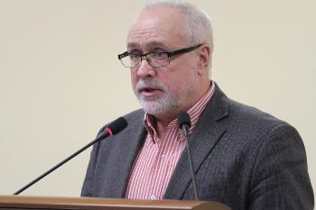 С докладом об инклюзивном образовании в Воронежском госуниверситете перед участниками заседания выступил проректор по воспитательной и социальной работе Олег Гришаев.