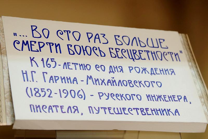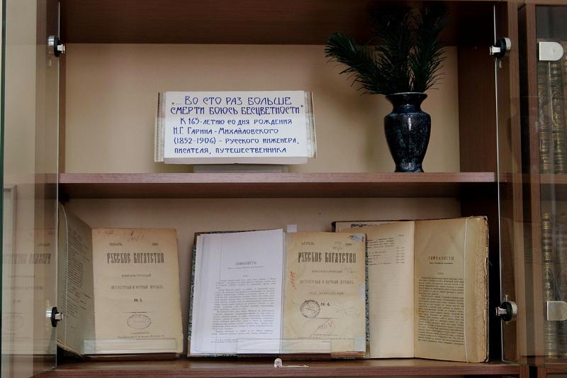 Выставка, посвященная 165-летию со дня рождения русского инженера, писателя, путешественника Н.Г. Гарина-Михайловского (1852–1906), открылась в Отделе редких книг Зональной научной библиотеке Воронежского государственного университета. В название выставки организаторы вынесли слова автора – «...Во сто раз больше смерти боюсь бесцветности».