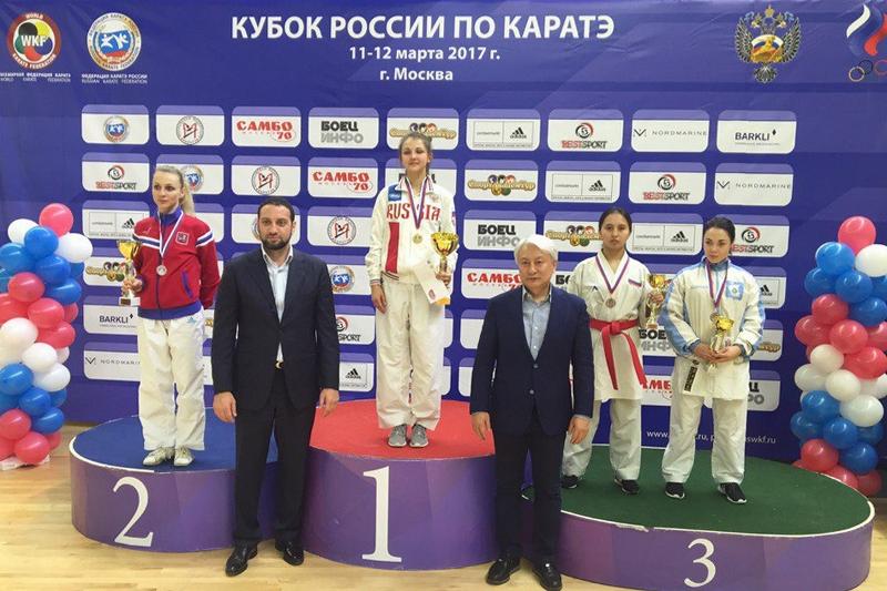 Бронзовым призером Кубка страны стала студентка юридического факультета Воронежского государственного университета Александра Лиджиева. Для Саши участие в соревнованиях стало дебютом уже во взрослой категории. Она уверенно обошла соперниц из Югры и Ростовской области, уступив весьма спорный балл спортсменке из Уфы, победительнице соревнований. В борьбе за «бронзу» воронежская каратистка методично расправилась с представительницей Московской области и подтвердила свою квалификацию.