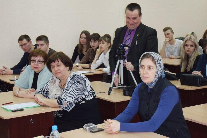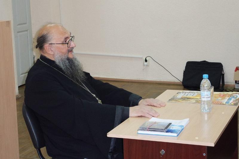 Перед аудиторией выступил настоятель Покровского храма села Отрадное Воронежской области, протоиерей Геннадий Заридзе (выпускник биолого-почвенного факультета ВГУ). Протоиерей Геннадий Заридзе является автором книги духовных стихотворений «Странник». На сегодняшний день его сборник выдержал несколько переизданий. Отец Геннадий рассказал слушателям о своей студенческой юности, о том, что заставило будущего автора взяться за перо, как сегодня сочетаются в его жизни религиозное служение и поэтическое творчество.