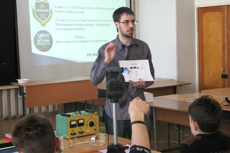 25 марта в стенах Главного корпуса Воронежского государственного университета вновь собрались слушатели проекта «Субботний университет». Ассистент кафедры радиофизики, кандидат физико-математических наук Владимир Проскуряков представил аудитории лекцию «Занимательные опыты по радиоэлектронике».