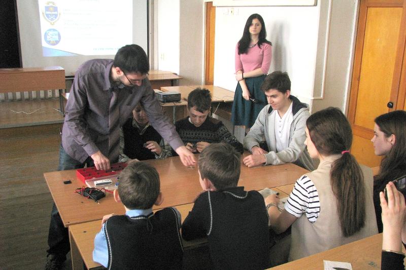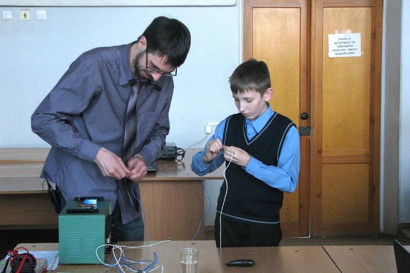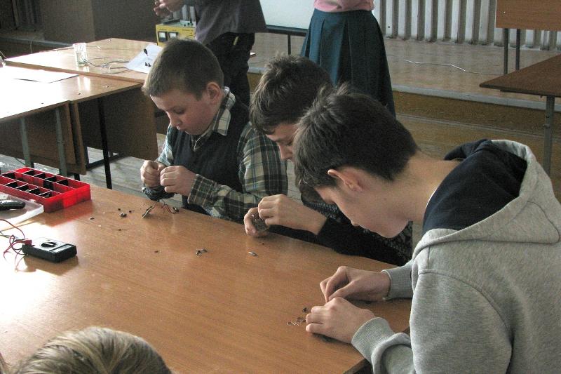 Ученый в доступной форме рассказал слушателям о роли резисторов, конденсаторов и транзисторов. Владимир Проскуряков также продемонстрировал аудитории занимательные опыты по радиоэлектронике, которые впоследствии помогли самым юным участникам без труда справиться со сбором светодиодной мигалки для велосипеда, которую каждый участник мастер-класса смог унести с собой.
