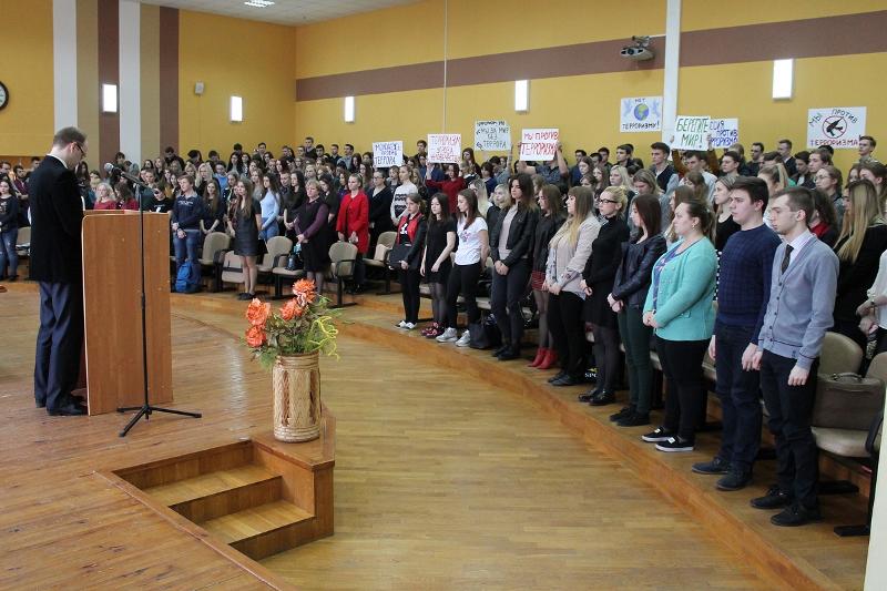Председатель Объединенного совета обучающихся Кристина Кулешова пригласила студентов к участию в общегородском митинге, который пройдет завтра, 8 апреля, на Советской площади города Воронежа. Мероприятие завершилось минутой молчания в память о жертвах в результате теракта в Санкт-Петербурге.