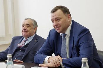 По завершении пленарного заседания состоялась встреча Дмитрия Ендовицкого и ведущего специалиста службы протокола Вячеслава Асеева с заместителем директора Федерального исследовательского центра «Информатика и управление» Российской академии наук, профессором Александром Зацаринным.