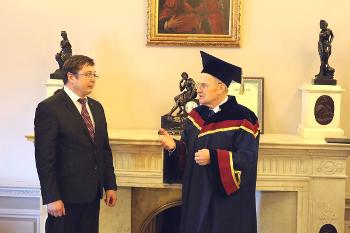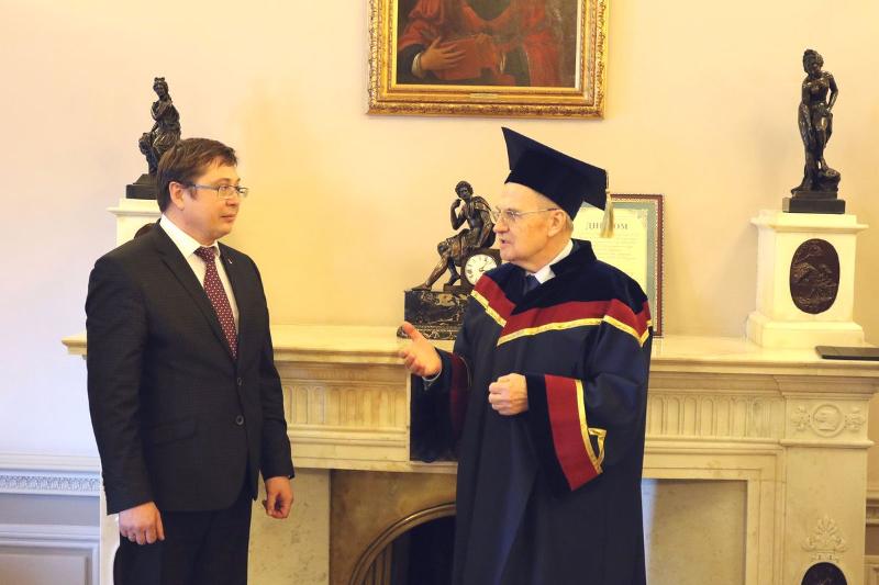 По поручению Ученого совета Воронежского государственного университета 19 апреля ректор вуза, профессор Дмитрий Ендовицкий и декан юридического факультета Юрий Старилов посетили Конституционный Суд Российской Федерации. В присутствии судей была проведена торжественная церемония вручения звания Почетного доктора ВГУ и Почетного знака «За заслуги перед Воронежским государственным университетом» председателю Конституционного суда РФ, Заслуженному юристу РФ, доктору юридических наук, профессору Валерию Дмитриевичу Зорькину. Валерий Зорькин был удостоен высоких университетских регалий за большой личный вклад в развитие правового государства в России, формирование современной конституционной юстиции и конституционного правосудия, поддержку университетского юридического образования, укрепление взаимодействия и плодотворного сотрудничества с Воронежским государственным университетом. Звание присвоено решением Ученого совета ВГУ от 25 ноября 2016 года.