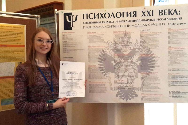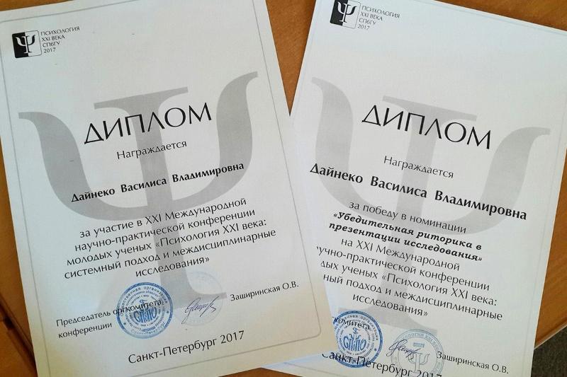 За победу в номинации «Убедительная риторика в презентации исследования» Василиса была награждена дипломом в секции «Политическая и экономическая психология».