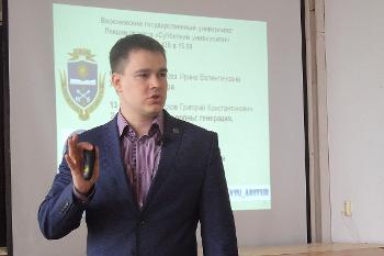В заключении Дмитрий Владимиров рассказал о работе регионального Молодежного клуба РГО, существующего на базе факультета географии, геоэкологии и туризма ВГУ и пригласил всех, кому не безразлично будущее культурно-исторического и природного наследия нашей страны, на совместную работу и обмен идеями на площадке Молодежного клуба.