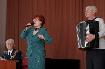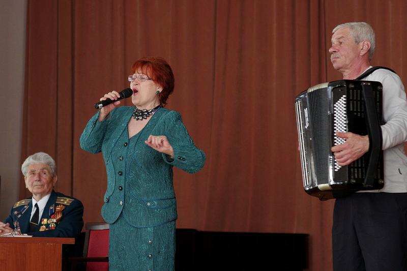 В завершение мероприятия Анатолий Кириллович представил заслуженных артистов России Раису Левашову и Юрия Фабричных, которые исполнили несколько песен военных лет.
