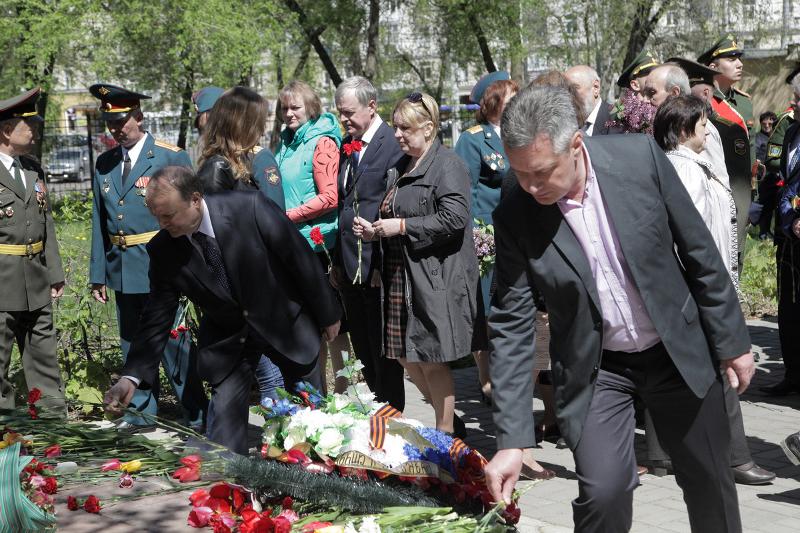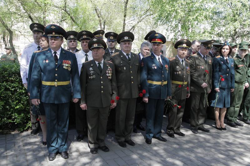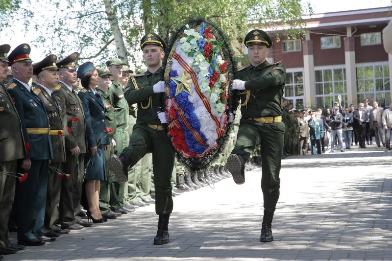 После их выступления в память о погибших Людмила Владимирова объявила минуту молчания, и затем курсанты военной кафедры торжественно возложили венок. Также все желающие смогли возложить цветы к памятнику.