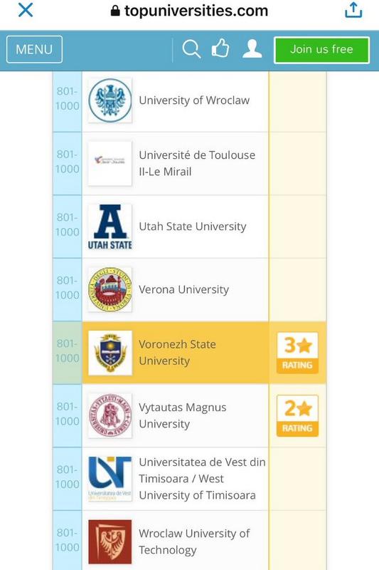 Опубликованы результаты одного из влиятельных международных рейтингов британской компании QS (Quacquarelli Symonds). Воронежский государственный университет вновь стал одним из 1000 лучших вузов мира. По результатам рейтинга QS World University Rankings 2017 года ВГУ на 801-1000 позиции среди лучших мировых вузов и 22 из 24 российских вузов.