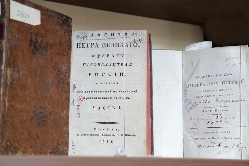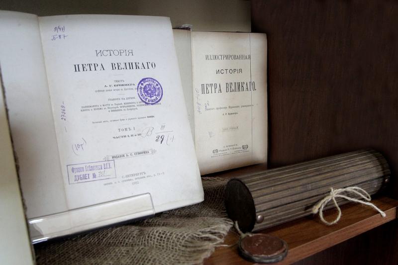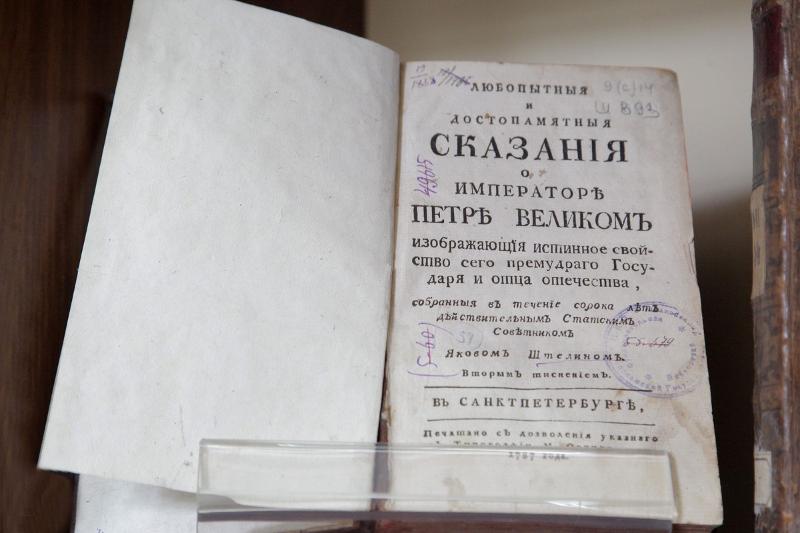 Александр Сергеевич Пушкин писал: «...Петр Великий...один есть целая всемирная история!». Строки поэта легли в название выставки. Закономерно, что личность Петра I нашла отражение в большом числе публикаций XVIII – XIX веков, хранящихся в ОРК ЗНБ ВГУ. Среди них Я.Я. Штелин «Любопытные и достопамятные сказания о Императоре Петре Великом» (1787), И.И. Голиков «Деяния Петра Великого, мудрого преобразователя России» (1788), «Собрание писем Императора Петра I» (1829), А.Г. Брикнер «Иллюстрированная история Петра Великого» (1902) и другие.