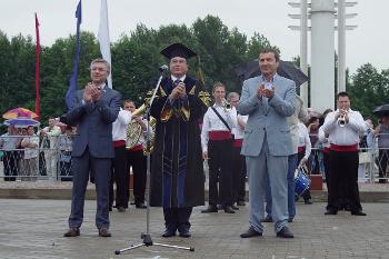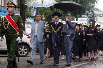 Воронежский государственный университет продолжает традицию торжественного вручения дипломов на Адмиралтейской площади. Праздничное шествие магистров, деканов факультетов вуза и почетных гостей состоялось 4 июля, уже во второй раз. Год назад идею вручения дипломов выпускникам ВГУ в духе классических европейских университетов поддержали в администрации города.