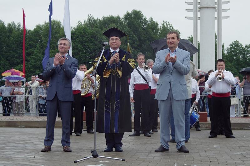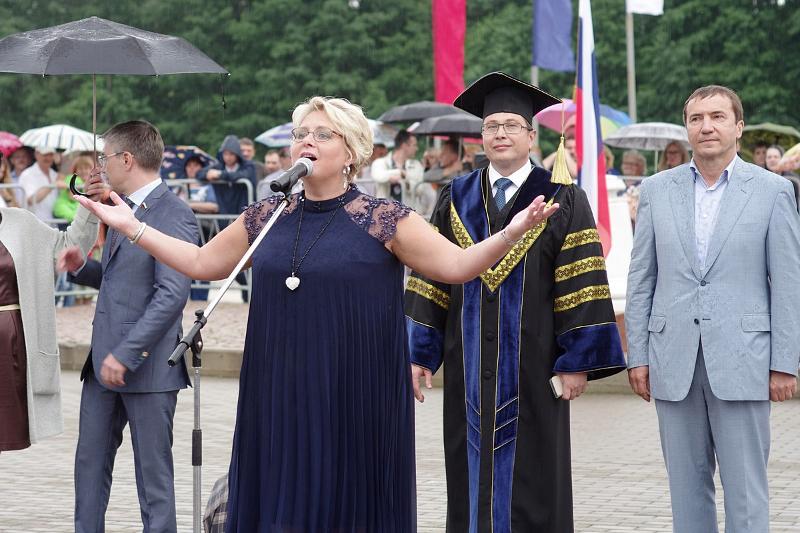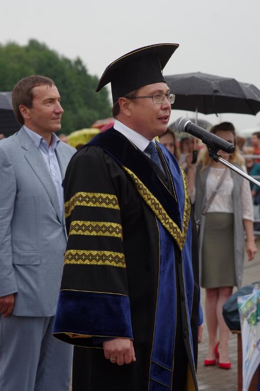 – Вот уже 99 лет продолжается российская история одного из самых известных университетов нашей страны. По мнению британского издания Times Higher Education, Воронежский государственный университет входит в число лучших вузов Европы. Сегодня здесь, в знаковом месте, на Адмиралтейской площади, где Петр I строил флот, мы проводим торжественную церемонию вручения дипломов. Наши магистры – это особая каста необыкновенно талантливых и амбициозных молодых людей. Вас обучали лучшие преподаватели, вы прошли испытание диссертацией. Сейчас вас около 1000 человек и половина из вас окончили ВГУ с красным дипломом. Молодцы! Всегда помните, любите и помогайте alma mater! Всегда помните и любите ваших учителей. Девиз университета – «Всегда в движении». Semper in motu! В добрый путь!