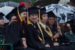 Дождь выпускникам не стал помехой. Церемония вручения началась ровно в 18:00. В начале мероприятия прозвучал гимн Российской Федерации в исполнении оркестра Воронежской филармонии. После этого три знаменных группы факультета военного образования ВГУ внесли флаг Российской Федерации, Воронежской области и знамя Воронежского госуниверситета, и с напутственным словом к университетскому братству обратится ректор ВГУ Дмитрий Ендовицкий: