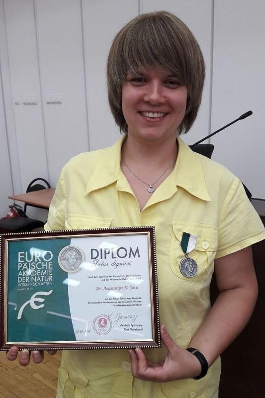 В результате плодотворного сотрудничества с Европейской Академией естественных наук (Europäische Akademie der Naturwissenschaften, Hannover) и Европейским научным обществом, по итогам прошедшей в Воронеже международной научно-практической конференции ЕАЕН 2017 «Проблемы современных экономических, правовых и естественных наук в России» решением Президиума и Научного совета ЕАЕН (г. Ганновер, Германия) доцент кафедры маркетинга экономического факультета Воронежского государственного университета Анастасия Сова награждена памятной медалью имени Альберта Швейцера за выдающийся вклад в развитие научных исследований.