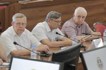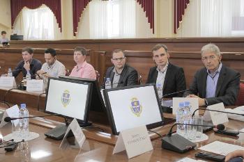 Александр Шашкин, Эдуард Алгазинов, Александр Баев и Анатолий Бобрешов презентовали свои факультеты – рассказали о направлениях подготовки, научных исследованиях и разработках. Участники встречи также обсудили опыт работы Воронежского госуниверситета с одаренными детьми. О созданном при вузе Центре робототехники рассказал заместитель факультета ПММ Константин Федутинов: