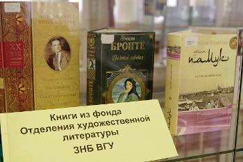 Из 3 миллионов 200 тысяч экземпляров книжного собрания университетской библиотеки в фестивале принимают участие издания, выпущенные в малом количестве экземпляров, в том числе альбомы по искусству: «Великие музеи мира», «Золотой век нидерландской живописи», «Дворцы Рима», «Народное искусство России», уникальная книга – «Древности Российского государства» и другие. Художественная литература из фондов ЗНБ ВГУ представлена изданиями, пользующимися наибольшим читательским спросом. Среди них произведения Дж. Чосера, У. Шекспира, Г. Филдинга, О. Памука. В экспозиции выставки также представлены книги-миниатюры, литература на иностранных языках. Посетители смогли увидеть интереснейшие книги, которые вызывают особый интерес у полиглотов и книжных гурманов, – «Введение в китайскую иероглифику», «Грамматика коптского языка», «1000 базовых иероглифов японского языка», «Микроязыки. Интерязыки», «Oxford: history of the classical world».