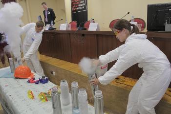 Организаторы также показали ребятам несколько проектов студентов Воронежского госуниверситета. Студенты второго курса факультета компьютерных наук ВГУ разработали приложение, которое совмещает в себе картинки из учебника анатомии и дополненную реальность, что делает процесс обучения более простым и увлекательным. Молодые ученые «CreativeScience» показали гостям шоу научных экспериментов, доказав, что наука может быть увлекательной. Участники проекта также смогли лично протестировать еще одно изобретение ВГУ – окулографический интерфейс, позволяющий управлять квадрокоптером при помощи глаз.