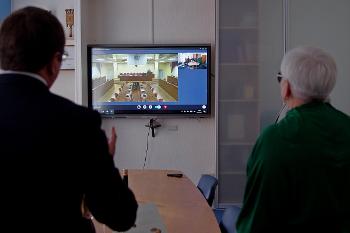 Презентацию нового мультимедийного оборудования провел начальник управления информатизации и компьютерных технологий Алексей Прохорченко. Он рассказал о технических характеристиках устройства, подчеркнул, что оно обладает рядом преимуществ – четким чистым звуком, встроенной системой видеоконференцсвязи с большим экраном и широким углом обзора, имеет возможность записывать проводимые мероприятия и трансляции.