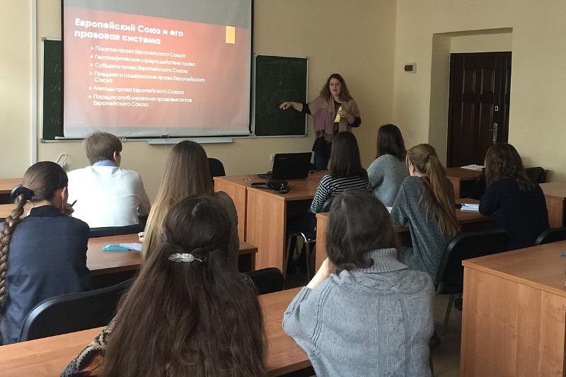 Школьникам были представлены три международных проекта, которые реализуются на кафедре в рамках европейской программы Эразмус +, акции Жана Монне «Образовательный модуль»: