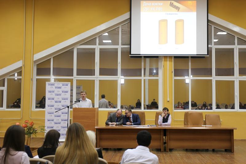 14 ноября на юридическом факультете Воронежского государственного университета при поддержке Воронежского регионального отделения Российского общества «Знание» прошел круглый стол для студентов на тему: «Коррупция: понятие, признаки, организация противодействия и ответственность». Основными докладчиками выступили студенты юридического факультета, слушателями стали студенты и преподаватели юридического и других факультетов вуза.