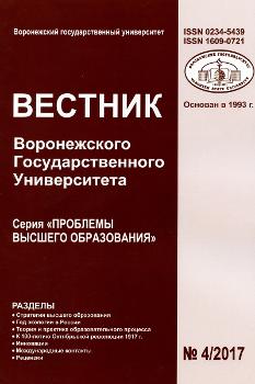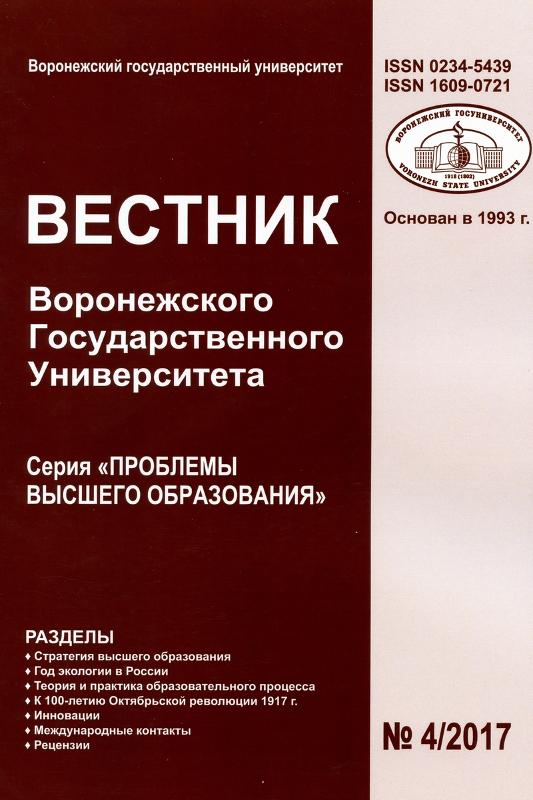 Вышел в свет очередной номер научного журнала «Вестник ВГУ» Серия: «Проблемы высшего образования». В его разделы вошли такие рубрики как: «Стратегия высшего образования», «Год экологии в России», «Теория и практика образовательного процесса», «К 100-летию Октябрьской революции 1917 года», «Инновации», «Международные контакты», «Рецензия».