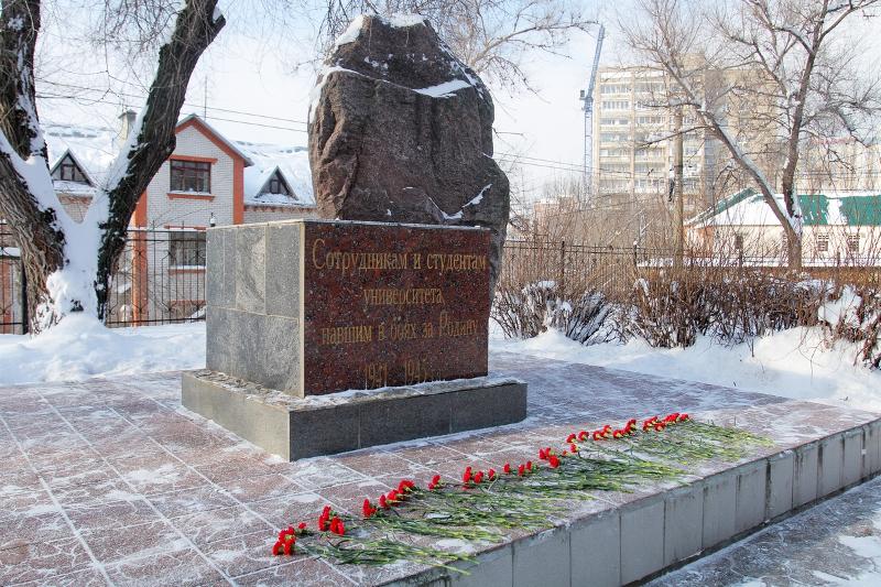 Коллектив университета почтил минутой молчания защитников родного города, страны, всех тех, кто пролил кровь за нашу землю. После чего состоялось возложение цветов к памятнику.