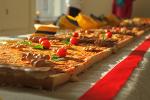 Далее собравшихся ожидал сюрприз, подготовленный сотрудниками управления общепита ВГУ. Шестиметровый пирог с курицей под сыром пармезан, украшенный символикой университета, порадовал виновников торжества. Также для студентов университета работал «Бар-вакансий» от компании Дом.ru. Учащиеся вуза смогли заполнить анкеты у барной стойки и попробовать уникальные безалкогольные коктейли: «Менеджер по продажам», «Специалист по продажам и обслуживанию», «Специалист по работе с крупными корпоративными клиентами», «Супервайзер отдела продаж», «Руководитель отдела продаж B2C». Студентка второго курса медико-биологического факультета ВГУ Валерия Линкова призналась, что вкус выбранной профессии «Специалист по продажам и обслуживанию» – кисло-сладкий.