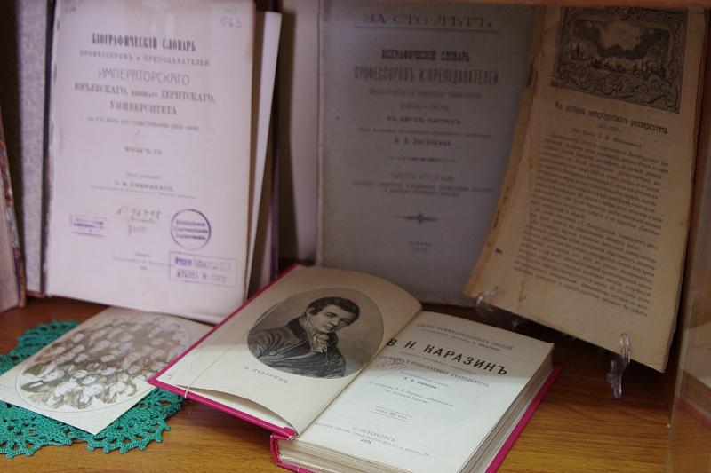Книги, представленные на выставке, отражают историю становления таких Российских университетов, как Московский университет (1755), Дерптский (Юрьевский) университет (1802), Казанский университет (1804), Харьковский университет (1805), Санкт-Петербургский университет (1819), Киевский университет (1834), Новороссийский университет (1865), Варшавский университет (1869), Томский университет (1878), Николаевский (Саратовский) университет (1909).