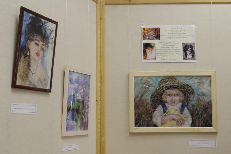 6 марта в Музее истории Воронежского госуниверситета открылась выставка «Шерстяные фантазии», где представлена шерстяная живопись Наталии Даньковой, инженера кафедры экологии и систематики беспозвоночных животных медико-биологического факультета.