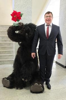 Студенты, преподаватели и гости университета фотографировались с плюшевым мамонтенком и жертвовали средства на покупку пасхальных подарков детям-сиротам и инвалидам.