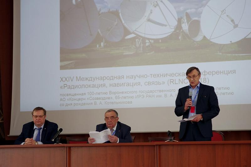 17 апреля в актовом зале главного учебного корпуса Воронежского государственного университета стартовала XXIV международная научно-техническая конференция «Радиолокация, навигация, связь», посвященная 100-летию ВГУ. Также данное мероприятие приурочено и к другим юбилейным датам – 60-летию АО «Концерн «Созвездие», 65-летию Института радиотехники и электроники имени В.А. Котельникова РАН и 110-летию со дня рождения В.А. Котельникова. Традиционно ее организаторами стали Воронежский госуниверситет, Институт радиотехники и электроники им. В.А. Котельникова РАН и АО «Концерн «Созвездие», которое ежегодно выступает генеральным спонсором конференции.