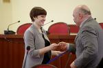 Дипломы и памятные монеты с символикой Агентства студентам вручили проректор по экономике и контрактной службе Лариса Коробейникова и декан экономического факультета Павел Канапухин.