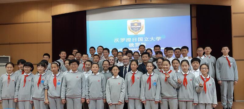 С руководством школы был согласован итоговый текст договора о сотрудничестве при подготовке китайских школьников к последующему обучению в ВГУ на русском языке. Были согласованы вопросы поддержки предметного обучения в Китае со стороны опытных преподавателей-методистов из ИМО ВГУ «вахтовым» методом с использованием учебных программ и технологий ИМО ВГУ. Договор о сотрудничестве был подписан с китайской стороны директором школы господином Су Сюйюном и парафирован с российской стороны Владимиром Родионовым.