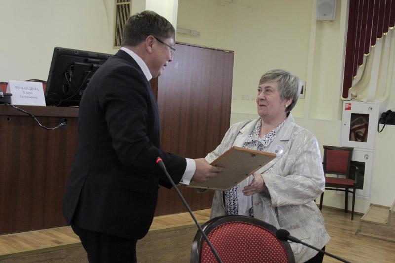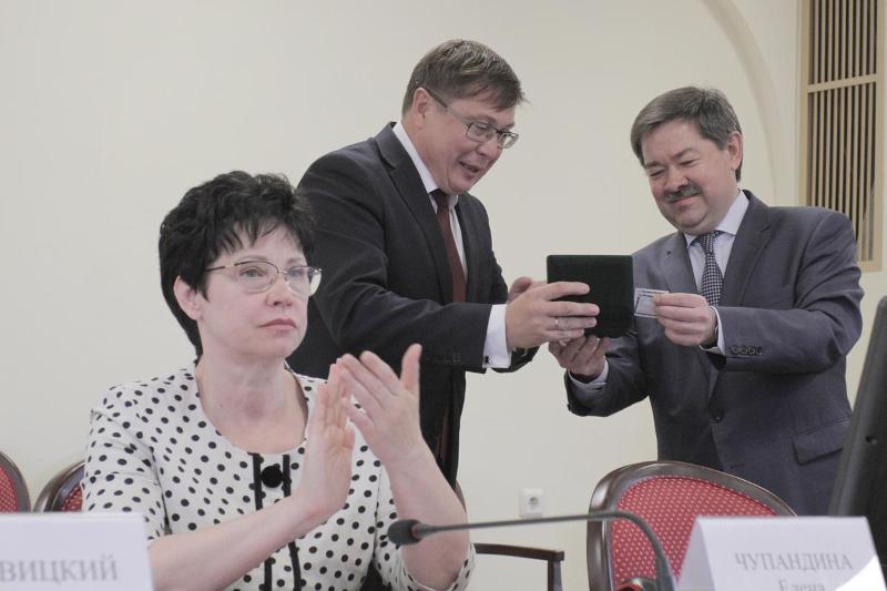 Перед началом заседания управляющий отделением по Воронежской области Главного Банка России по ЦФО Игорь Кочегаров торжественно передал ректору вуза Дмитрию Ендовицкому серебряную памятную монету, посвященную вузу.